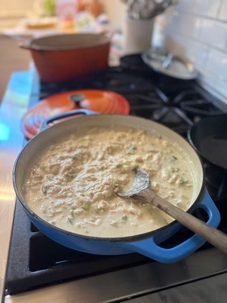 1. Place a rack in the center of the oven, and preheat the oven to 325ºF. Grease and flour three 9-inch round cake pans. 2. Place the butter and shortening in a large bowl and blend with an electric mixer on high speed until creamy, 1 minute. Gradually add the sugar, blending on medium speed. Add the egg yolks, one yolk at a time, beating just until combined. Add the vanilla and combine. 3. Place the flour and soda in a small bowl and sift to combine well. Spoon a third of the flour mixture into the butter mixture and blend on low, then add 1/2 cup of the buttermilk and blend. Add another third flour mixture, then the rest of the buttermilk, blending, then the rest of the flour mixture. Fold in the coconut and pecans just until combined. Set aside. 4. Place the 5 egg whites in a large bowl and beat on high speed with an electric mixer until stiff peaks form, 3 to 4 minutes. Fold the beaten whites into the batter until the whites are well combined. Divide the batter between the three pans, and smooth the tops. Place the pans in the oven. 5. Bake until the cakes are golden brown and just pull away from the sides of the pan, 22 to 25 minutes. Remove the pans to a rack to cool 10 minutes, then run a knife around the edges. Shake the layers gently, then invert onto a rack right side up to cool completely, 30 minutes. Leave the oven on. 6. Meanwhile, make the frosting. Place the 1/2 cup nuts for the frosting in a small pan in the oven to toast for 3 to 4 minutes. Remove and set aside to cool. Place the butter and cream cheese in a large bowl and beat with an electric mixer on medium speed until creamy, 1 minute. Add the vanilla and half of the sugar, beating on medium until combined. Add another cup sugar and the salt and blend on medium-high until combined and light. And add the remaining sugar as needed, and beat on medium-high to lighten the frosting. Fold in the cooled toasted pecans. 7. To assemble the cake, place one cooled layer on a cake stand and cover with 3/4 cup frosting, spread to the edges. Place a second layer on top, and spread it with 3/4 cup frosting. Place the third layer on top, and add 1 to 1/2 cups frosting to the top of the cake, spreading it decoratively across the top. Use the remaining frosting to frost the sides of the cake, using smooth and clean strokes. Pat extra coconut on the top (and sides, if desired) of the cake for garnish, if desired. Add pecan halves to garnish, if desired. You’re on the free list for Anne Byrn: Between the Layers. If you’re liking what you’re reading, why don’t you become a paying subscriber for more recipes, stories, and content. |