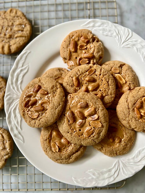 The leaves of the tea plant (Camellia sinensis) contain hundreds of chemical compounds that contribute to taste, color, and aroma.Francl says caffeine in tea is more pronounced if the tea is brewed from fresh leaves versus a tea bag. And tea can be helpful in reducing pain, she adds. Francl keeps a tea bag in her first aid kit because the caffeine makes Ibuprofen more effective when treating acute pain. She says sun tea doesn’t need the sun; it just needs time to brew. And lemon added to tea will make it lighter because the lemon lowers the pH. But just because lemon tea looks paler in color doesn’t mean the tea hasn’t steeped sufficiently. For those of us in a hurry who microwave a cup of water in which we steep a tea bag, we shouldn’t be surprised that a scum forms on the top. The water doesn’t get hot enough. Squeeze in lemon, and that scum goes away, Francl says. Add milk to tea, something close to the heart of British tea drinkers, and expect cloudiness. But when you pour the milk in the cup—before the tea or after—is personal preference. A chemist will say it’s best to add it after the tea is poured. ‘’It’s hard to trace back when this actually began,’’ says Francl. ‘’George Orwell wrote an essay about tea, and said milk is last and he is firm about it. But many people think if you put the milk in first and pour in the tea it warms up the milk. Suit yourself.’’ Tea is personal, but don’t take it too personallyI can’t help but see irony in the Brits requisitioning her book and then roasting it. Scottish-born historian Annette Laing who writes Non-Boring History on Substack, insists this is a ‘’manufactured controversy.’’ ‘’Teasing people is part of what we do,’’ says Laing. And tea, adds Laing, is more than a beverage. ‘’It’s a meal. It’s an institution!’’ Anytime you have sorrow or disaster, you have tea, she says. Serving a ‘’cuppa’’ is ‘’very much wrapped up in feelings of home and friendship.’’ ‘’In the 18th Century, the poor would line up outside rich persons’ homes and servants would sell leftover food and leftover tea. You can make a decent cup of tea with used tea leaves. Sugar was pouring into Britain from the West Indies at that time, and it cut down on the tannins. Then in the 19th Century tea came from India, so it was cheaper and became the national drink. To an 1890 factory worker, a cup of tea became a meal with a cold jam sandwich.’’ But you can’t blame a scientist for trying to improve things. Francl drinks a nice smoky Assam in the morning and Rose Congou—a black tea scented with rose petals, supposedly a favorite of the late Princess Diana—in the afternoon. She buys her tea from Upton Tea Imports in Boston. A fairly boring tea drinker myself choosing PG Tips or Yorkshire Gold black tea in the morning and going as crazy as Earl Grey in the afternoon, I wondered what salt might do to my usual cup. So I first poured boiling water into a tall white porcelain mug. I added a small pinch - maybe 10 individual pieces - of kosher salt. And then I added the tea bag and let it steep about one minute because Francl says that’s all the time you need for caffeine to be released. I took a sip. It tasted rounder and quite nice! But do I really need to add salt? I salt my eggs and spread my toast with salted butter. I may skip the salt because who needs more salt in our diet when there’s the risk of hypertension, high blood pressure? Plus, I already love the flavor of plain black tea. Salt might work for folks who don’t love the taste of tea and need convincing. Salt changes tasteIn cooking, salt flavors food, balances sugar, slows the growth of yeast, and tenderizes. But mostly, Francl says, salt changes what we taste. When I spread salted butter on toast, the toast has more flavor. The jam tastes better, too. Francl says I can thank chemistry for all of that. ‘’When sodium ions are present, we are going to taste food more. My dad had no sense of smell, but he salted heavily because he said it gave food taste,’’ she says. No wonder MSG (monosodium glutamate) is a called a flavor enhancer. So all this talk about salt in tea made me hungry for some salty-ish American cookies, not biscuits, just cookies full of peanut butter. I had made a mental note for months to bake the exact cookie recipe made famous in Los Angeles pastry chef Nancy Silverton’s book, The Cookie That Changed My Life. I bought the sorghum flour, Skippy peanut butter, and roasted peanuts like she advised. I was ready for my life to be changed by a cookie. But honestly, these cookies were a lot of trouble.After baking one batch, I didn’t like the cluster of roasted peanuts on top or the goo of peanut butter underneath. I just wanted peanut butter cookies of childhood—am I starting to whine like a Brit?—except better. I wanted the cross-hatch pattern of a fork on top, careful balance of flavors between sugar and salt, and a pronounced peanut butter oomph. Silverton’s recipe delivers all that if you just use her recipe for the cookie dough and don’t finish the cookies as she instructs. Thanks to Silverton, founder of La Brea Bakery, I learned two new things about cookie science. One, a little sorghum flour makes cookies chewier. The recipe calls for a cup each of sorghum flour and unbleached wheat flour. Secondly, she bakes the cookies at 375ºF for four minutes on the top oven rack and then places them on the bottom rack for another four minutes. They were brilliant, as the British would say. Baking cookies and brewing tea are cozy February things to do. They seem non-controversial. And you might want to keep them that way. Or not. Happy baking and steeping! - xo, Anne P.S. Coming Thursday for paid subscribers, I’ll share links to my Super Bowl last-minute favorites and a new recipe for game day. THE RECIPE: Nancy Silverton’s Peanut Butter Cookies (My Way)Well, they’re actually Los Angeles