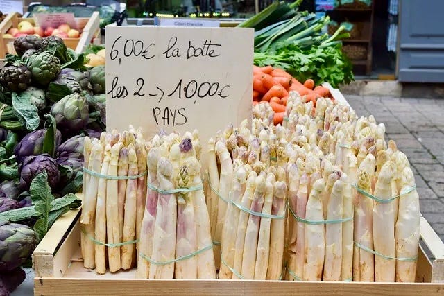 Thank you for reading Between the Layers! Please enjoy and share this free post with your friends. A Springtime Ode to Asparagus - No. 280Rachel Phipps shares how to cook it in the microwave (gasp!) or eat it raw in a fabulous salad with lemon and toasted hazelnutsI’m thrilled to welcome British food writer Rachel Phipps to Between the Layers today so she can tell us about her springtime obsession with asparagus and her mother Fiona’s unconventional microwave method of cooking asparagus, plus share that yummy salad recipe. Rachel writes a wonderful newsletter here on Substack called Ingredient where she shares what she’s cooking in the green English countryside. Check it out! - Anne I NEVER LIKED ASPARAGUS GROWING UP. I never understood it, and to me, it was just another green vegetable like all others, something I was never going to love until I started cooking it myself. My mother, on the other hand, has always been an asparagus obsessive, and whose behaviour very much set the benchmark for how I source my asparagus today. We were always on the lookout, driving the rural back lanes of the Kentish countryside for signs on farm gates advertising delicate spears of green for sale. I marvelled at the price she was willing to pay for a bunch, and I’d watch her methodically snap off the woody stems before blanching them swiftly in a splash of boiling water and a sprinkle of Maldon sea salt in the microwave. Always the microwave. And truthfully, it’s the only vegetable I’d consider cooking in there because it’s perfect every time. My mother’s microwave asparagusWith delicate flavours and a characteristic crunch, asparagus is simple and clean. It heralds spring. Which is what made me finally fall in love with green English asparagus. It tastes verdant, with the promise of delicious things to come. So I didn’t want to over cook it. While some people may raise their eyebrows at my mother’s microwave method, I think it really does cook asparagus perfectly, which is tender, but with a good amount of bite. Here’s how she does it: