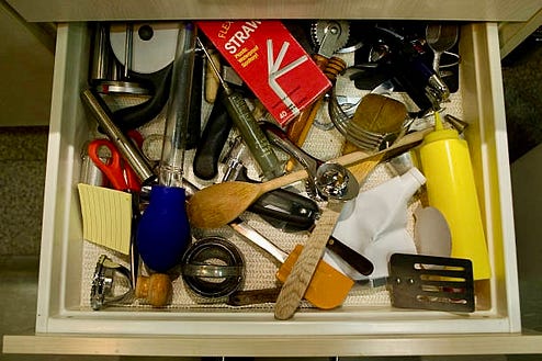 This is a preview of today’s paid post. If you’d like to read more and receive the recipe at the end, consider becoming a paid subscriber. Thank you! I’m thrilled to welcome my good friend Susan Puckett to Between the Layers. Susan and I have known each other since the newspaper days in Atlanta, and like good friends, we tell each other things. She started telling me about her messy kitchen and how she finally had enough and reorganized it, and I said, WAIT! Write about this journey. So she did, and now we can all clean up our kitchens and keep cooking joyful thanks to Susan. Plus, that strawberry cake is something! - Anne By Susan PuckettMY FRIENDS CALL ME ‘’HURRICANE SUSAN.’’ When we get together to cook, one of them—Pam—can’t resist following behind me to clean up the scraps and spills I leave in my wake. And while no one has ever accused me of being a neatnik, I do like to know where ingredients are in my kitchen. It makes cooking more fun. Just recently, I rummaged through Asian noodles, seven kinds of flours, and Mexican dried chilies in search of brown lentils for a dinner salad. Down on my knees, I reached to the hinterlands of the bottom cabinets sensing lentils were in there somewhere. But by the time I extracted a bag, my kitchen floor looked like a crime scene, and my interest in making lentil salad or cooking anything was gone. How had the warm and fuzzy heart of my home devolved into a den of dysfunction?It was zapping my energy and killing my desire to cook. And sadly, that overpacked cabinet revealed a bigger problem: I have too many ingredients and tools with which to cook and no place to put them all. That’s compounded by the facts I have no walk-in pantry and I am of a no-waste mindset. I want to be a good steward of the earth and am reluctant to pitch anything that might wind up in a landfill, even if it’s a broken wooden spoon or container of fermented shrimp paste languishing in the fridge. In addition, cooking is not just a hobby. I am a food writer whose kitchen serves as a research lab for assignments. I try about 100 new recipes a year, and so I have to buy a lot of one-off ingredients. I lose money when I can’t find those lentils I’ve already purchased. I lose time when I need to dash to the store for the spice I know I already have someplace. And what really bothers me is that I see mayhem every time I sit at the table for a meal or to work on an assignment. Decades before Marie Kondo became a household name, my mother gifted me a copy of Karen Kingston’s Clear Your Clutter with Feng Shui: Free Yourself from Physical, Mental, Emotional, and Spiritual Clutter Forever. It was a not-so-subtle Christmas hint to help mend my messy ways. I rolled my eyes, sat down, and read the book cover to cover. That tiny paperback inspired me that less can be more, and I downsized into a 1,150-square-foot condo. I purged what didn’t fit into my new smaller space. Eighteen years later, I still feel good about that decision. And I keep that book by my bedside to this day, along with Kondo’s blockbuster, The Life-Changing Magic of Tidying Up: The Japanese Art of Decluttering and Organizing, which guides me through periodic purges. When something has to give, try an old-fashioned spring clean.According to the website Oh So Spotless, most of us are overwhelmed by clutter and don’t know how to deal with it, which leads to even more clutter. To keep me motivated while I worked to clean up my kitchen, I tuned in to podcasts from decluttering gurus Dana K. White (A Slob Comes Clean) and Cassandra Aarssen (Clutter Bug). I found their pep talks helpful and loaded with tips like you should begin the project with a garbage bag and don’t try to overthink things. And while Marie Kondo didn’t devote much space to kitchens in her bestseller, I could hear her words of wisdom: