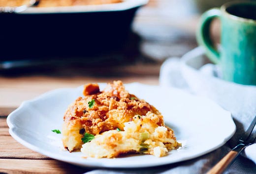 1. Lightly mist a 13-by 9-inch glass or ceramic baking dish with vegetable oil spray. Set aside. 2. Place the olive oil or butter in a small skillet and place over medium-high heat. Add the onion and bell pepper, and reduce the heat to medium. Stir and saute until the veggies soften, 3 to 4 minutes. Set aside. 3. Scatter half of the bread cubes in the baking dish. Top with the ham, if desired, the cheeses, and the onion and pepper mixture. Add the remaining bread cubes. Set the baking dish aside. 4. Place the eggs, milk, mustard, and cayenne or nutmeg, if desired, in a medium-size bowl and whisk to combine. Pour the egg mixture over the bread cubes and press down on them to immerse them in the liquid. Cover the dish with plastic wrap, and place it in the refrigerator overnight. 5. The next morning, preheat the oven to 350ºF. Remove the plastic wrap. Toss the cracker crumbs and melted butter in a small bowl. Using your fingers, scatter the crumb mixture over the top of the soaked bread cubes. Place the dish in the oven, and bake until the casserole bakes up golden brown, about 55 minutes to 1 hour. Serve at once. (And you can reheat leftovers in the microwave on day two.) You’re on the free list for Anne Byrn: Between the Layers. If you’re liking what you’re reading, why don’t you become a paying subscriber for more recipes, stories, and content. |