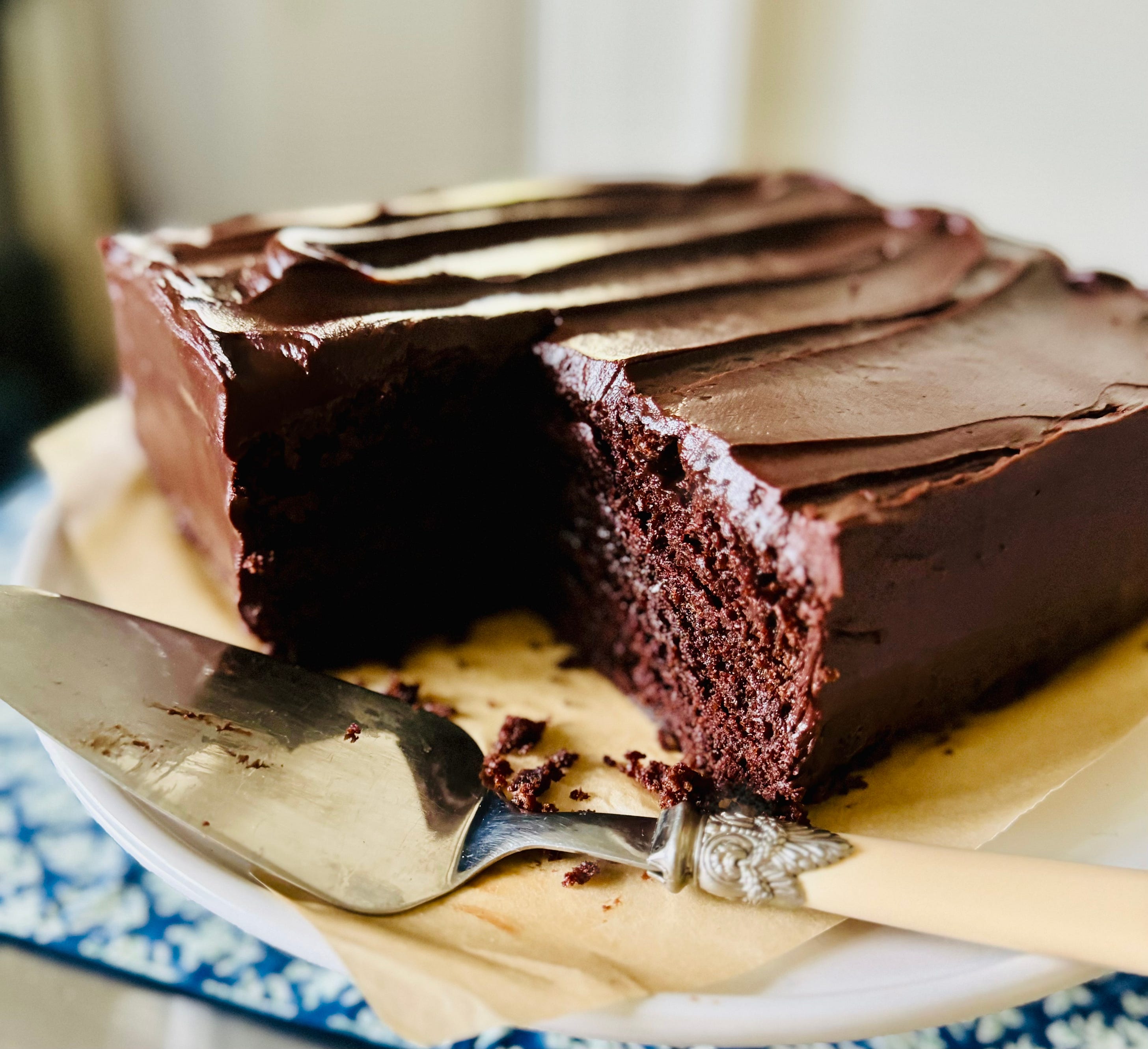 THE RECIPE: Very Good Chocolate CakeThis cake stores well at cool room temperature for up to a week. I froze half of the cake for a dinner party next month. It is rich and moist and the perfect birthday cake for the chocolate lover. You can absolutely frost it with cream cheese frosting or a vanilla or coffee buttercream. But the first time you bake it, make it just like the recipe printed here today. It is very good. I reduced the sugar in the frosting from the original, and I cut the recipe in half. If you want extra frosting, double the recipe I provide. This is adapted slightly from The Gift of Southern Cooking, by Edna Lewis and Scott Peacock. Makes one 8-inch cake, serves 12 to 16 The Cake: