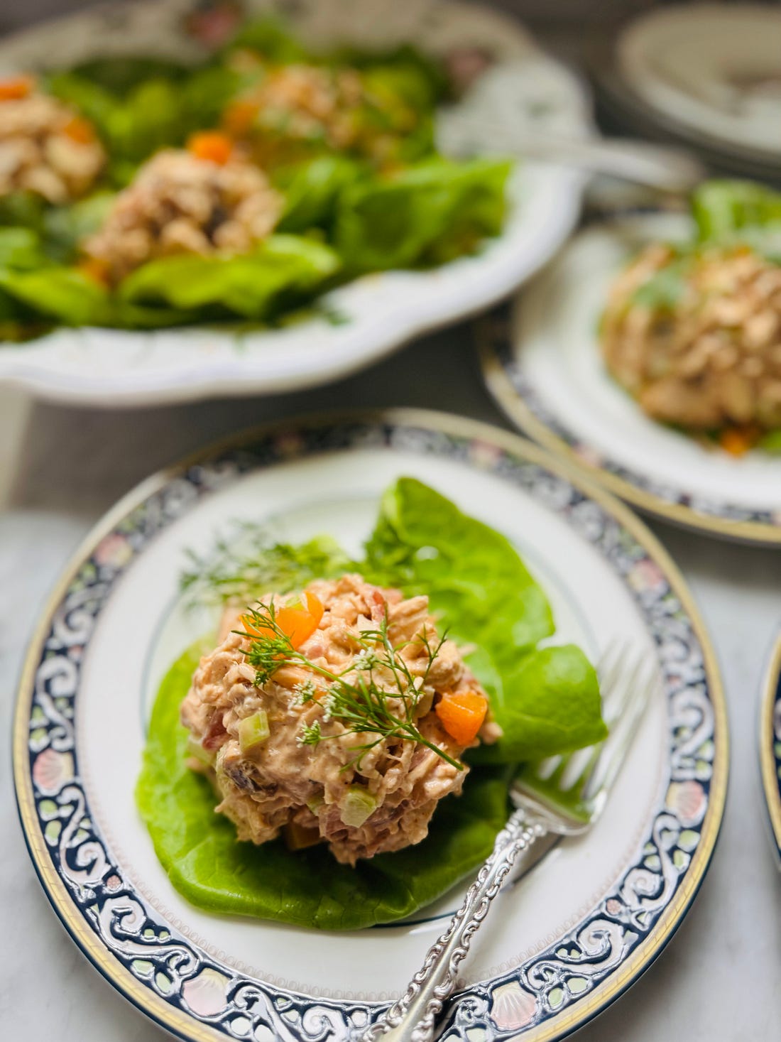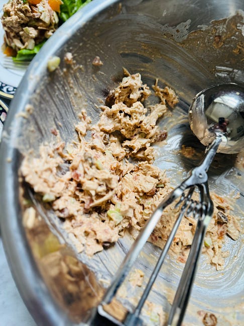 MMP was born on March 15, 1887, to Ella Merriweather Post and Charles William (C. W.) Post, the latter the founder of the Post cereal empire. But it wasn’t always easy for their family. When MMP was young, her father suffered from mental health issues and was treated at the Battle Creek (Michigan) Sanitarium run by Seventh Day Adventist Dr. John Harvey Kellogg. Upon recovering, Post bought a toaster and began experimenting with healthy recipes for making his own breakfast cereal. He created Grape Nuts, Post Toasties, as well as Postum, a cereal-based coffee substitute, brands that would soon captivate America and make him a multimillionaire. After the death of both parents, MMP became the sole owner of the $20 million cereal company that would be renamed the General Foods Corporation. But in the early 1900s, she could not vote or serve on her company’s board of directors. Yet she had an instinct for what foods Americans would want in their kitchens. Jell-O, Hellman’s mayonnaise, Swan’s Down cake flour, these were early acquisitions as was Birdseye frozen foods, something she knew American cooks would embrace. In spite of her mansions with gold faucets and shiny marble floors, and in spite of the Faberge eggs and diamond necklaces she collected, MMP had a Midwestern sensibility evidenced by the bowl of Grape Nuts she ate every morning. She funded the largest field hospital in France for the Red Cross during World War I. In 1929, she opened soup kitchens to feed the hungry in Manhattan. She gave her yacht, the Sea Cloud, to the U.S. Navy for one dollar in World War II. After our tour of Hillwood, we wound up in the Merriweather garden cafe and ordered Coronation chicken salad at the suggestion of our friend Elizabeth who has visited Hillwood so many times she could be a docent. Coronation chicken salad was known first as Poulet Reine Elizabeth and served at Queen Elizabeth’s 1953 coronation lunch. The story goes that Rosemary Hume, a former student of Le Cordon Bleu cooking school in Paris, had opened L’Ecole du Petit Cordon Bleu in Marylebone, London in 1933 along with Dione Lucas. The school closed in 1939 because of World War II but reopened in 1945. Hume and Constance Spry, a renowned floral arranger, were asked to cater a lunch for Her Majesty and 350 guests in the Great Hall of Westminster School. The chicken was boned and coated in a creamy curry sauce and served alongside a rice salad flecked with peas. To put this event in context, in 1953, MMP was on marriage three and living in Washington D.C. after years in Russia, where her husband Joe Davies had been the U.S. ambassador to the Soviet Union and Belgium. Curry powder would have been a novel seasoning in recipes then. England was still under the restrictions of post World War II rationing, and India, the birthplace of the flavor, had gained its independence from British colonization six years earlier. But by the 1960s, curry powder would find its home quite nicely in the simplest of British and American recipes, especially chicken salad. And this particular chicken salad with its apricot undertones. I couldn’t help but love the irony of the Hillwood cafe serving Coronation chicken because as much as MMP seemed to seek the regal elements of life, had private ships, and later her own plane, she never thought of herself as royalty. I’m not quite sure what Coronation chicken salad’s connection is to Hillwood other than it was a recipe of the moment. When you tour Hillwood and hear about how MMP entertained the military, the wounded soldiers, the high society along with her hairdressers, you realize she just loved to throw a good party. And pay for it herself. If she were born in June, she wouldn’t request an expensive parade or fanfare. Her parties, her acquisitions, they were always for others. It helped that she had good taste in art. And when she designed the interiors of Hillwood, those walls and every piece of furniture was intentionally created as a museum and a way to preserve the beauty of this world for others to see. I have no idea if those two girls walking into the doors of Hillwood picked up on MMP’s generosity, or how at the time she had to fight to be a powerful businesswoman. They might not have a clue what a visionary she was to see the future in frozen foods even if frozen peas or chicken tenders are tucked in their home freezer. But surely they saw how a very rich person wanted to share what she acquired. And maybe their visit starts a love of history, art, and beauty that lasts a lifetime. - xo, Anne P.S. If you want to learn more about the life of Marjorie Merriweather Post, travel to Hillwood. It’s a quick Uber north of D.C., and from azaleas to peonies to roses, something will be in bloom. Take a tour, or do as we did because a little short on time, and download the app and walk room to room and garden to garden as if MMP is right there with you. It’s an enchanting way to begin summer. Or read more about her story in the 2022 book, the Magnificent Lives of Marjorie Post, by Allison Pataki. What’s your take on Coronation Chicken Salad, Marjorie Merriweather Post, or your favorite fancy house we should visit?THE RECIPE: Coronation Chicken SaladI was raised on curried chicken salad, which I now realize was a spin-off of the real recipe, created in 1953 by Le Cordon Bleu cooking school in London to honor Queen Elizabeth’s coronation. And I love it for summer meals. But it needs a facelift. So I pulled out two recipes as a starting point to make something original. The first was the Cordon Bleu recipe with its addition of red wine and making a reduced sauce that folds into the mayonnaise mixture, adds whipped cream, and is then puréed. I’ve seen the photos of that rich pastel pink-looking sauce and thought 72 years later, do we even eat like that anymore? The second was a simpler recipe adding cilantro and raisins for interest and also combining Greek yogurt with the mayonnaise for 