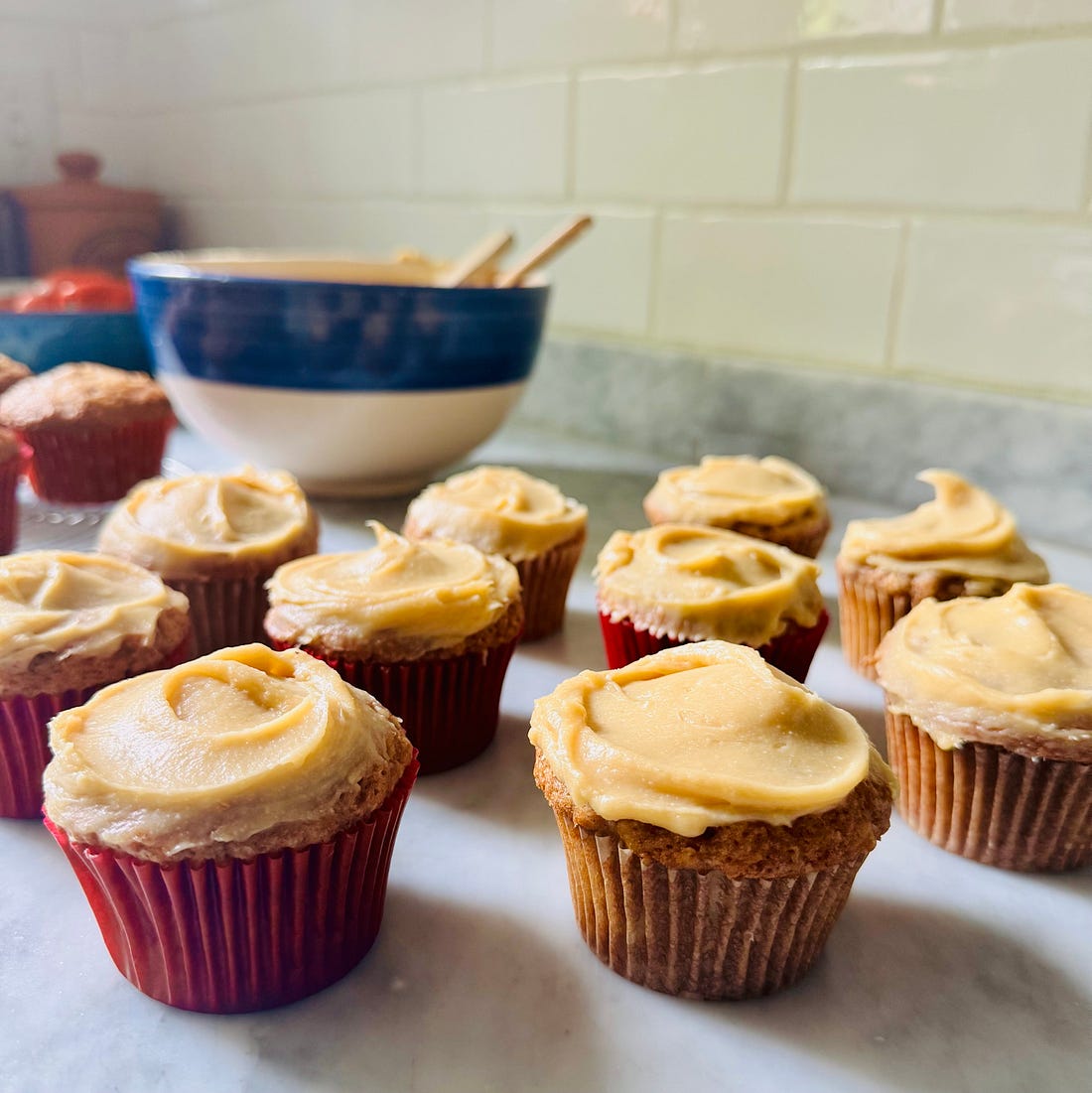 My Genius Brown Sugar Frosting (double for extra-tall frosted cupcakes!)Place 4 tablespoons (half a stick) lightly salted butter, 1/2 cup firmly packed light brown sugar, 1 teaspoon vanilla extract, and a pinch of salt in a small saucepan over low heat and stir until the butter melts. Turn off the heat and turn the mixture into a small mixing bowl. Turn 4 ounces (half a container) of whipped cream cheese into the bowl, and stir with a rubber spatula until well combined. Place in the fridge about 10 minutes to thicken up, then you are ready to frost the cupcakes. You’re on the free list for Anne Byrn: Between the Layers. If you’re liking what you’re reading, why don’t you become a paying subscriber for more recipes, stories, and content. |