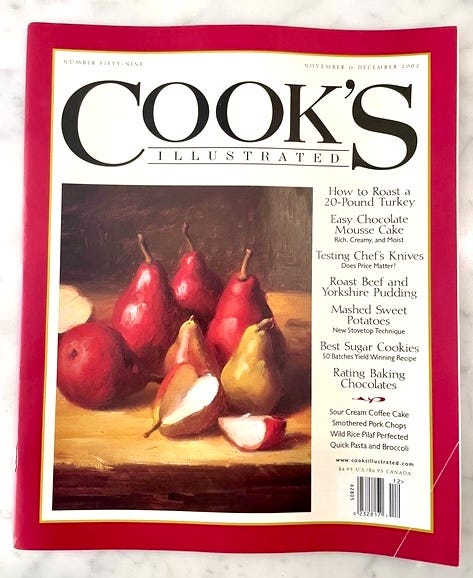 And on the pages inside, Cook’s had equally serious recipes that appealed to both beginners who needed hand-holding and more seasoned cooks who reveled in details. I’m guessing every family has at least one cooking nerd who has subscribed to Cook’s.