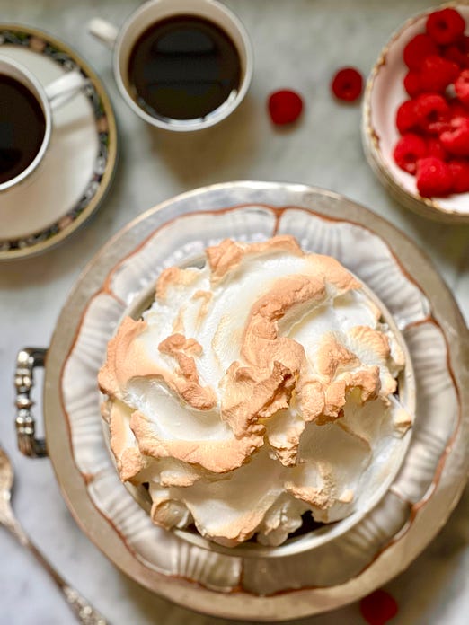 I hope you enjoy reading this issue of Between the Layers! For more recipes, consider becoming a Paid Subscriber. A funny thing happened while researching a book on Southern baking. I learned there was a Queen of Puddings, more regal than banana, more spectacular than chocolate, just something fitting for a Queen. I didn’t think I’d be baking this pudding until I heard the news of the Queen’s passing last week. And then I knew what I had to bake for her. It was a little out of my comfort zone, and I’m not just talking about grams and milliliters. I’m speaking about puddings in general. We Americans have a limited pudding repertoire. They are either stirred on the stovetop and eaten when we’re feeling poorly, or they’re piled on top of bananas and Vanilla Wafers for a summer barbecue. But to the Queen and her people, puddings are everything. I even bought the National Trust Book of Puddings a couple years ago while visiting England. It promised ‘’50 Irresistibly nostalgic sweet treats and comforting classics.’’ ‘’Pudding is deeply rooted in the British psyche,’’ the author, Regula Ysewijn writes. And ‘’it is part of what it means to be British and it has been that way for centuries.’’The pressure was building. This little book hadn’t been opened since my one attempt at sticky toffee pudding—a failure. Would I trust it to guide me through a Queen of Puddings? Past the obstacles of curdling eggs and billowy meringue? I decided to see what Nigella Lawson had to say about it. She writes that she wasn’t brought up on such nursery food. (That’s right, soft pudding-like foods you can eat with a spoon are called nursery foods. And you don’t have to be a baby to eat them.) Her version contained brioche—a step up from the bread crumbs in the original recipe. I had some leftover pound cake, which is what happens when you’re writing a Southern baking book. Pound cake fills freezers, countertops, and now, a pudding. The first mention of Queen of Puddings is believed to have been in Eliza Alcock’s book, The Frugal Housekeeper’s Companion (1812). You poured a lemon-scented custard into a bread-lined tin and baked it. No mention of jam or meringue. Rachel Phipps, who lives in London and writes Ingredient here on Substack was commenting on my Tuesday post that Queen of Puddings is made in restaurants, and they often use cake crumbs ‘’to fancy it up a bit.’’ It saw a resurgence when everyone was obsessed with The Great British Bake Off... Subscribe to Anne Byrn: Between the Layers to read the rest.Become a paying subscriber of Anne Byrn: Between the Layers to get access to this post and other subscriber-only content. A subscription gets you: