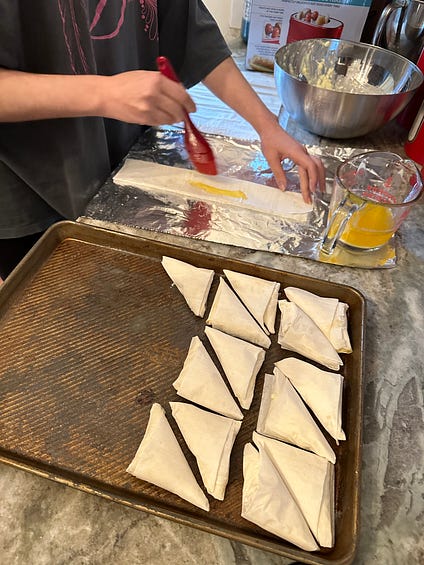 Thank you for reading Between the Layers! Cooking in Full Color: Anna Maria Horner - No. 216Flowers, nature, and color creep into the fabrics she designs. Plus her family’s Greek cheese tiropita recipeIF YOU’VE EVER SEEN A FRIDA KAHLO painting or better yet, a room full of her paintings, then you know the power of color. Kahlo painted her life in symbolic hues full of drab but also light giving greens, true blues, frantic yellows, and visceral reds. The same can be said for all artists really, from the famous ones of history to artists in our modern time, who express creativity not just through oils but even through fabric. Such an artist lives less than 30 minutes away from me, and she had been on my short-list to interview for some time. An author and global quilting force, she’s a joyful who’s-who in the fabric genre and a savvy mother who has raised seven children while building an international business of putting art on fabric. In addition, her first mentor and high school art teacher is my sister-in-law. So what was taking me so long? I messaged her via Instagram. Which led to a phone call, then groceries and testing her favorite tiropita recipe, and some email exchanges, and now, I introduce, Anna Maria Horner, whose favorite color is pink. Who drinks very strong, very black, very hot coffee each morning. And whose favorite artist is Frida Kahlo. ‘’Using your hands and sharing what you know are blessed gifts at the core of each one of us.’’ - Anna Maria HornerWe are all talented, Anna Maria says, but our gifts just might be dormant. Hers aren’t. She was born into a talented family in Chicago but raised in Knoxville, Tennessee, as the youngest of three. Her father emigrated from Greece in the 1960s, met her mother while she was in nursing school, and his job as an engineer with TVA brought the family to Tennessee. ‘’I come from a family of artists, including painters, weavers, and knitters, and learned to sew as a child. My father was a painter as a hobby,’’ she says. ‘’My mother, whose family was from northern Indiana, did every home craft there was.’’ They not only possessed this family gift of making beautiful things, but also the urge, the duty, to make things. ‘’Humans are naturally inclined this way,’’ she adds. Objects in Anna Maria’s childhood home were a mixture of Greek handiwork and American 4-H practicality. ‘’The Greek things in our home were decorative, but the American things from my mother’s side of the family were useful, like a wool sweater to stay warm.’’ Anna Maria, 50, married young, had her first child at 19, and so the construction of her textile business was done with young children around and involved. Her two youngest, 10 and 14, still live at home. Her eldest, Juliana, just sold her Los Angeles makeup company. Her son Joseph is a cook at Butcher and Bee restaurant in Nashville, while another child is a musician, one a tattoo artist, and one a nursing student. ‘’I have very creative children.’’ And she stays connected to them through food so they don’t forget their family’s Greek heritage and their mother’s love, even if it takes an act of Congress to get everyone in the same room at the same time for a meal. ‘’I paint flowers so they will not die." - Frida KahloLike Frida Kahlo, Anna Maria paints flowers but they wind up on yards of fabric or live on a quilt. She also paints a meal in her head and stages a family feast where everyone gathers at her table. ‘’It’s always around food.’’ Just this past April she had accidentally scheduled herself to be away teaching and lecturing over Greek Easter. ‘’I was crushed.’’ If at home, she would have been creating the meal of roasted lamb and potatoes, cheese tiropitas and baklava from her Greek grandmother’s recipes. Her children call the meal ‘’fam lamb.’’ After her class in San Antonio a kind woman named Yezenia noticed Anna Maria was away from her family on the holiday and baked her a traditional Greek Easter bread called Tsoureki with anise and orange blossom and the red dyed eggs on top. ‘’It was so beautiful,’’ Horner says. ‘’She had no idea what she was giving me.’’ The fluid process of cooking for Anna Maria is much like creating a new design. ‘’I am not going to know until I get in there what I’m going to make, and even then, I’ll change my mind.’’ Inspiration begins at homeOutside in her garden, Anna Maria has planted dahlias, foxgloves, echinacea, black-eyed Susans, and sedum. She tells me her fabrics are inspired by what’s around her, but all I need to do is look at her Our Fair Home quilting collection to see the flowers. It was born out of moving into a 123-year-old home in historic Franklin, just south in Nashville. ‘’Most of the time I have some stray idea or thought and build some narrative or travel to a new place. This new collection is quite floral based,’’ she says. ‘’It comes from the garden and architecture. I think about who lived here in this house before…the different decades and fashions and cocktail parties on the porch, so thus the Lily Pulitzer feel and preppy plaid ties.’’ I can’t decide whether Anna Maria’s art is influenced by her life or vice versa. Like her quilts, there seems to be a pattern to everything about her. She’s a creative machine, and she’s about to begin writing her fourth book on quilting. And then there are her irresistible and triangular cheese tiropitas. As I made them, folding delicate phyllo pastry over a cheese filling, I could see this is a recipe children might learn. This is a production type of recipe with repetition to it, much like my yeast roll making or our family’s sugar cookies. Alongside roasted lamb and potatoes, cheese tiropitas may just be a side dish, a supporting act, but, no doubt, there is art to them. And don’t think for a minute that cooking isn’t art. You work with your hands, jus