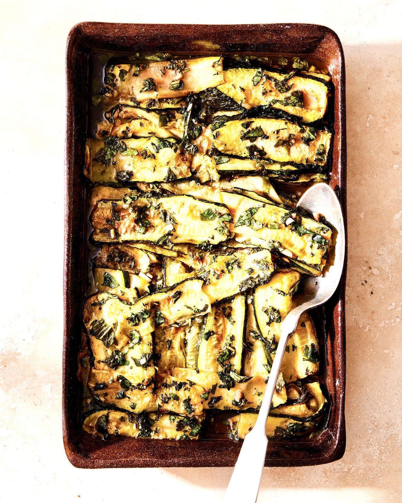 Slice the zucchini into ¼-inch thick (6mm) planks or rounds. Lay the zucchini on a paper towel-lined baking sheet and let rest for at least 1 hour to draw out some of the moisture. (Use a second baking sheet if they don’t all fit in one layer.) Stir together the basil, mint, and garlic in a small bowl, and set aside. Heat the oil in a large frying pan set over medium heat. Working in batches, fry the zucchini, turning once, until softened and lightly browned on both sides, 3 to 5 minutes per side. If the pan begins to look dry, add another tablespoon of oil as needed. The zucchini tends to sputter a lot; use a splatter screen to keep the oil in the pan. As each batch of zucchini is fried, transfer them to a small baking dish and sprinkle with a bit of the herb mixture, vinegar, salt, and pepper. Gently toss to combine, then continue adding fried zucchini and the remaining ingredients until everything is used up. Let the zucchini sit at room temperature, basting occasionally with the juices from the baking dish, for at least 30 minutes before serving to allow the garlic to soften, and the flavors to meld. Just before serving, taste and add more salt, if needed and, if desired, drizzle with a little more olive oil. Store leftovers, covered, in the fridge for up to 3 days. You’re on the free list for Anne Byrn: Between the Layers. If you’re liking what you’re reading, why don’t you become a paying subscriber for more recipes, stories, and content. |
