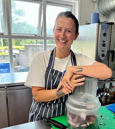 Thank you for reading Between the Layers! If you’d like more recipes, consider becoming a paid subscriber during the August Special with 20% off. Taste of a Place: Northern Ireland - No. 233The countryside, the food, The Troubles, and baker Ciara OhartghaileIN EARLY JUNE I AM RIDING IN A VAN with other hikers heading to a ferry to Rathlin Island off the coast of Northern Ireland. We make a left turn in the town of Ballycastle, and as I look ahead, I see a shop with loaves of sourdough bread stacked high in the window. Above the window: URSA MINOR. What I would have given to have been able to jump out of the van and walk into that bake shop. If you’ve ever been part of a group tour, then maybe you’ve felt the urge to explore on your own, too? I thought about it all day. That evening in a local restaurant called Shanty, I see on the menu a local camembert-style of cheese from Cooleeney Farm in County Tipperary, served with caramelized onion and fig chutney and grilled Ursa Minor bread. It was definitely a sign.As it turns out, Ursa Minor’s bread is very well known in these parts and has received Slow Food UK’s best bakery award for the past three years. So with the tour guide’s permission, I broke ranks. The next day, my husband and I booked a cab and headed back to Ballycastle, a town of 5,000 situated along the spectacular Causeway Coastal Route running north along the coast from Belfast to Derry. Part One: In kitchen with CiaraCiara and Dara Ohartghaile are the wife and husband team who created Ursa Minor. And as it turned out, Ciara is a fellow writer here on Substack and had given me this tiny window to come by and say hello because she was catering a party for 150 that evening. I thought to myself, who gives time to someone she has never met when she is feeding that many people? She’s either insane or terribly kind. It was the latter. Ciara was downstairs in the kitchen roasting purple onion, fennel, and garlic for a chickpea stew. She didn’t mind my being there while she multitasked. She has three young children, ages 3, 6, and 9, so I guess she’s good at it! And her stress level was pretty low, which she said came from experience with entertaining. She grew up cooking in the kitchen with both her mother and grandmother. As a child, she was put in charge of passing appetizers and drinks at their parties. ‘’I absolutely love a party. My parents always have been magnificent hosts and we’ve had the most fun and amazing get togethers in our home over the years, with friends and family, music and plenty of food and drink. ‘’