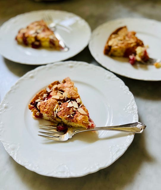 Here’s a preview of today’s Thursday post. For the full story and recipe, will you consider becoming a paid subscriber? Thank you! TODAY ISN’T A STORY of the classic Cinderella cake—the September plum torte—the most popular recipe ever published in The New York Times. EVER. I wrote about this cake in my book, American Cake, and here on Substack last year. I said that some people mark their calendars with reminders to bake the Plum Torte when September rolls along and somehow they don’t bother to keep the recipe but still beg the New York Times to run the recipe once again. It’s been printed every year at the same time since the early 1980s. Nope. Today is about looking at that recipe differently and switching it up with new fruit and a new attitude. Plums were obviously the fruit of choice for something to be called a Plum Torte. While the recipe dates back 40 years in newsprint, this is an older and more versatile cake! If you open a 1931 edition of The Joy of Cooking you’ll find something similar on many of the pages, and these recipes call for peaches, plums, apples, figs, whatever fruit you have. Once baking powder came along in the first half of the 20th Century, home cooks were all about tossing out yeast and modernizing their mothers’ time-consuming cake recipes. And this little baking powder cake was born. Even Lois Levine and her friend Marian Burros, yes THE Marian Burros, food writer extraordinaire of both the Washington Post and the NYT, who collaborated on a 1969 cookbook called Elegant but Easy, knew this was a staple of their mother’s generation. When they shared Lois' recipe for a Fruit Torte they had no idea that recipe would amass a cult following once Marian wrote about it for the NYT 40 years ago. Its one-bowl batter is easy to adapt no matter the fruit. You just mix it up and spread it into a springform pan, and then arrange halves of peeled (or not!) and pitted (definitely!) fruit on top. The closer you space the fruit together, the more cobbler-ish and custardy in texture. The less fruit and the wider distance between the fruit, the more the batter rises up and browns and takes on the appearance of cake. Last month, I wanted to bake this cake with peaches and take it with us to visit friends in North Carolina, but alas, no local peaches. And yet at Trader Joe’s there were flats of gorgeous nectarines. I bought them for a salad, only needed a few, and the rest were ripening on my counter and growing more fragrant by the minute. While peaches are persnickety and tend to be mealy late in the season, these nectarines begged to be in this cake and gave me no trouble. Our friends loved it and I thought to myself, the possibilities have only begun!... Subscribe to Anne Byrn: Between the Layers to read the rest.Become a paying subscriber of Anne Byrn: Between the Layers to get access to this post and other subscriber-only content. A subscription gets you: