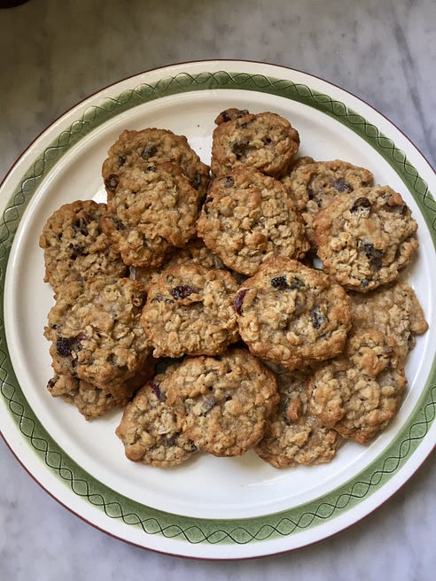 Thank you for reading Between the Layers! Please enjoy and share this free post with your friends. Who Needs Potpourri? Bake Fall Cookies - No. 249Oatmeal, molasses, and peanut butter are all flavors I crave this time of year + Barbara’s Oatmeal Raisin Cookie recipe.THIS PAST SATURDAY I WAS INVITED to speak about American baking at a meeting of The Jewish Historical Society of South Carolina in Columbia. That morning, we awakened to the news of the Hamas invasion of Israel. On a table at the back of the meeting room were trays of homemade cookies—rugelach from the ladies at the Beth Shalom synagogue, Sandra Polikaff’s sugar cookies dusted with cinnamon, and Lyssa Harvey’s chocolate meringue cookies. With a warm cup of tea or coffee, these cookies offered comfort to everyone in the room stunned by the tragic news. Cookies couldn’t do anything about a volatile Middle East conflict, and but they could offer familiarity and maintain traditions. The coastal South has a deep Jewish heritage, and congregations were founded in Savannah in 1735 and Charleston in 1749. By 1800, more Jews lived in Charleston than New York City. While I had already planned to write about cookies in this newsletter, those bites of Jewish history on the back table, many of them recipes from the book Kugels & Collards, gave me that extra push.