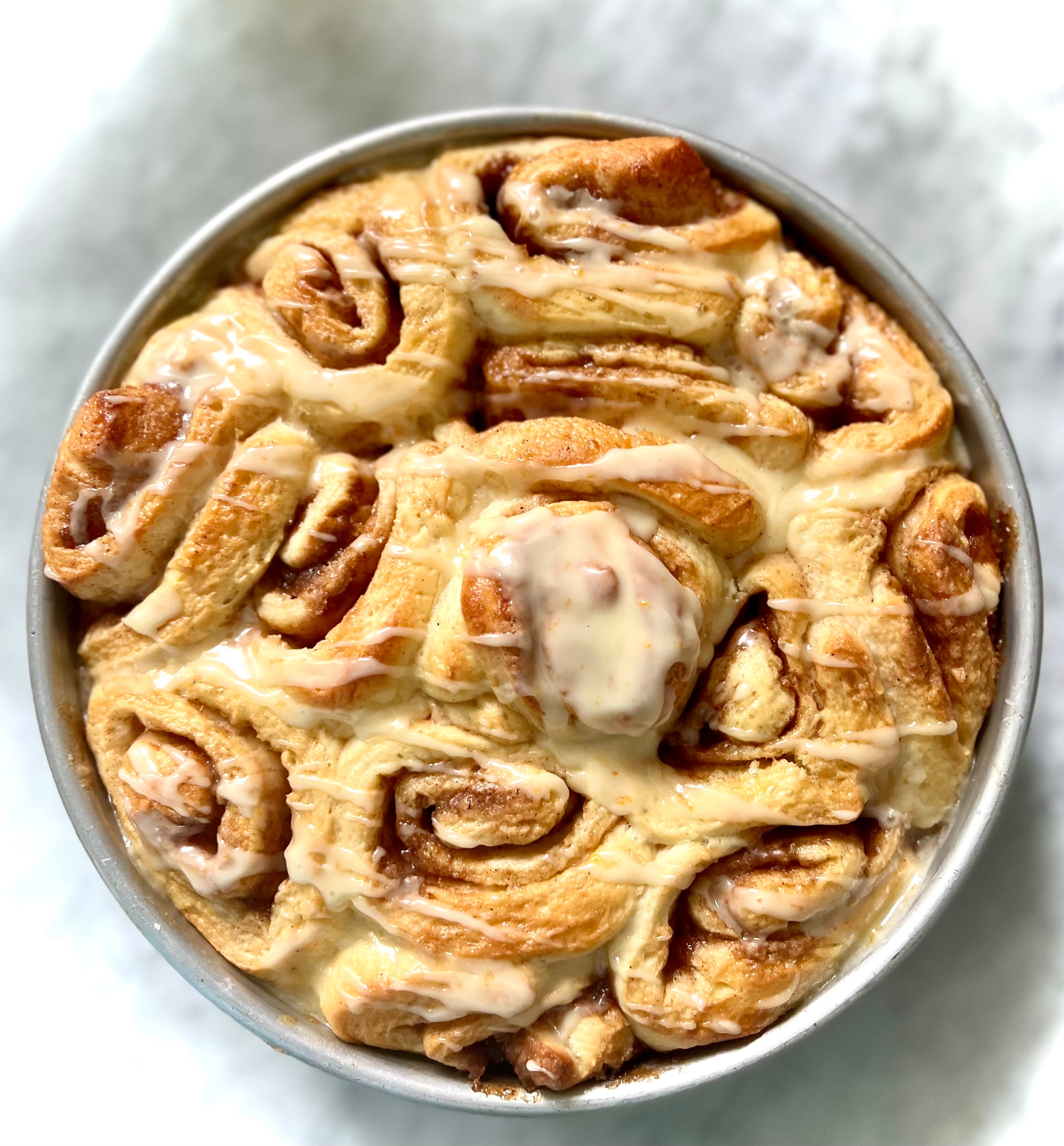 Part Two: A new take on an old recipeI was unsure if a soft Southern style of cinnamon roll was in his wheelhouse, but Andrew assured me dough is dough. In advance of his first consultation, I emailed Andrew my mom’s recipe and some concerns like why do they go stale and questions such as what’s the best flour to use. It was thrilling to get clear-cut answers, plus I came away with two big takeaways: First of all, if I wanted the rolls to last a few days, I could use part of the flour in something called a ‘’scald,’’ which helps retain moisture, the basis of milk bread. You gently heat the flour, sugar, and milk mixture to 160ºF, whisk in an egg, and add it to the rest of the flour, salt, and yeast then mix the dough. To be technical, it has to do with starches, gelling, and hydration, but resourceful home bread bakers around the world have been applying this process each time they instinctively added leftover starchy potatoes or a porridge of oats or rice to bread and noticed how it made the loaf softer and keep longer. ‘’Unfortunately, very thinly rolled doughs with sugar around the crumb are prone to drying out as the sugar pulls moisture from the dough, so it’s sort of inevitable,’’ Andrew says. A scald or tangzhong helps keep the rolls soft and moist longer. Glutinous rice flour is his scald flour of choice for two reasons: it forms a smooth paste when combined with boiling liquid (wheat flour and other starches clump and end up lumpy), and it is high in amylopectin, the best starch for holding off staling. That recipe, and a detailed step by step, can be found over on Wordloaf. The recipe I share today uses wheat flour in the scald. (And at the end, I offer a version for traditionalists not quite ready to scald!) Secondly, I learned to add a little flour to the filling. ‘’Flour helps lock the moisture into the filling, so that it is more solid after baking,’’ Andrew says. ‘’In filled pan loaves (like babka or cinnamon bread), it helps prevent gaps from forming, because the moisture doesn’t turn to steam and inflate the space between the layers.’’ I often melt the butter and pour it over the rolled out dough, dust it with sugar and cinnamon, and call it a day. Sometimes, I sprinkle on raisins or chopped pecans. The first recipe Andrew shared with me began with soft butter, spread over the dough like you are buttering toast. He then spoons over a filling mixture of brown sugar, cinnamon, and flour. That’s what is pictured above. He has since modified his method to use melted butter and mix all the filling together before scattering it over the dough. Suit yourself. I preferred the taste and color of a mixture of half dark and half light brown sugar, but you can use all light or all dark. Lastly, Andrew says to spritz the filling with water. (Have a mister as well as a kitchen scale handy when making this recipe.) The spritz of water helps the filling stay in place, he says, and ‘’makes it more syrupy without pulling moisture from the dough itself.’’ Andrew upped the salt in my mother’s recipe, and he told me to use unsalted butter in both the dough and filling. My Fleishman’s yeast from the jar was fine although he prefers instant yeast. Part Three: Baking the sweet rollsHere’s where I tell the truth: I baked the rolls the first two times with the wrong type of rice flour in the scald. If you want to make the scald with rice flour, it needs to be sweet rice flour and glutinous. The third time, right after Andrew is pulling his hair out dealing with my back and forth questions, I noticed the note at the end of his recipe. I could use King Arthur all-purpose wheat flour in the scald. I didn’t need to run out to the Asian market and get the correct rice flour. I was already using KA AP in the dough itself, so why not keep the recipe to just one flour? The third bake was fabulous! But, just as Andrew said, it’s a little tricky making a scald using wheat flour because it wants to lump up. Just like gravy making, you whisk flour (and sugar) into cold milk, and then gently heat. I was concerned that heating in a saucepan on top of the stove would be too hot, so I took Andrew’s advice and heated the mixture in a glass bowl in the microwave in 15-second increments. He said the scald needed to reach 160ºF, and when it was lingering in the 140s, I placed the heat-proof glass bowl in a skillet with about an inch of water over low heat and let the scald come to 160ºF in this gentle bain marie, stirring constantly. I also added a little more warm milk to the dough when I mixed it, and Andrew and I went back and forth about this, too, but I noticed the dough made with this extra milk was more like that of my mother’s rolls and baked into soft, imperfectly shaped rolls you could pull apart with your fingers. My mother baked sweet rolls in cake pans, whereas I’d been baking them on a sheet pan or 13 by 9-inch pan for ease. But you definitely want a 9-inch cake pan because it helps the rolls stay squished together. She and I baked them on the middle rack of the oven, but Andrew says with enriched doughs like this it’s best to bake on a lower than middle rack so the rolls don’t over brown before they are baked through. He prefers 325ºF versus 350ºF, which was my mother’s choice, for the same reason, letting the rolls cook through before they get too brown on top. In the end, my husband was very happy I decided to reconstruct my mother’s cinnamon roll recipe. While he didn’t think anything was wrong with the recipe in the first place, he agreed to be a taste tester as long as there was cold milk in the fridge. He and I both agreed that the rolls made with the scald were impressive. We also liked them lightly glazed. Both Andrew and I asked our Instagram followers to weigh in about icing on a cinnamon roll, and the comments were heated! My followers leaned toward icing. I think Andrew’s were more evenly divided. What do yo