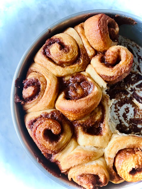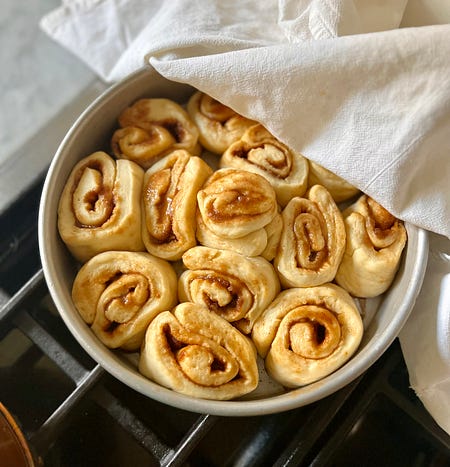 Thank you for reading Between the Layers! Please enjoy and share this free post with your friends. How to Bake the Perfect Cinnamon Roll - No. 263Wordloaf’s Andrew Janjigian tweaks my mother’s sweet roll recipe just in time for ChristmasToday, I am thrilled to partner with Wordloaf’s Andrew Janjigian for this post on cinnamon rolls. While I tend to be pretty relaxed when it comes to baking, Andrew, a chemist, is dedicated to all the details. To read his take on improving my mom’s cinnamon roll recipe, visit Wordloaf. Andrew lives and bakes in Cambridge, Massachusetts, is a former long-time test cook at Cook's Illustrated magazine, has been teaching baking and pizza classes for more than 10 years, and before working at Cook's Illustrated, he was an organic chemist in the biotech industry. Part One: The origin storyFor the past few months I’ve been taking an online writing course challenging me to reach back into my life for moments and stories worth telling other people about. As has been scientifically proven, memory and our sense of smell are connected, so my memories largely have to do with the scents emanating from my mother’s kitchen. The most vivid was her cinnamon rolls. The aroma seemed to drift up the stairs and into my bedroom. As if under a spell, I race to the kitchen and reach for a roll. My mother immediately swats away my hand.